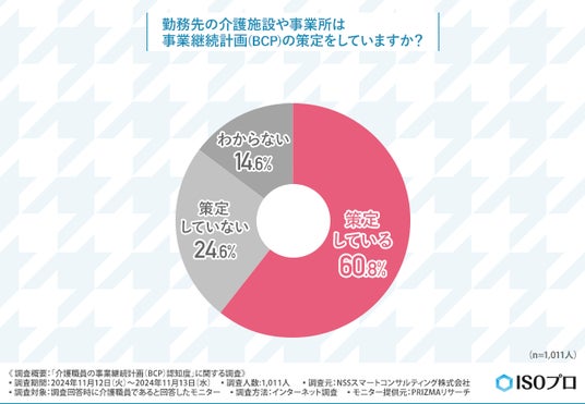 NSSスマートコンサルティング株式会社(所在地:東京都新宿区、代表取締役:安藤 栄祐)は、介護職員を対象に、「介護職員の事業継続計画(BCP)認知度」に関する調査を行いました。