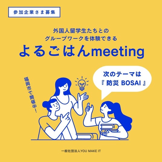 一般社団法人YOU MAKE IT【企業・自治体職員向け/参加者募集】よるごはんmeeting11 体験参加のご案内(テーマは「やさしい防災(BOSAI)」をつくろう!)