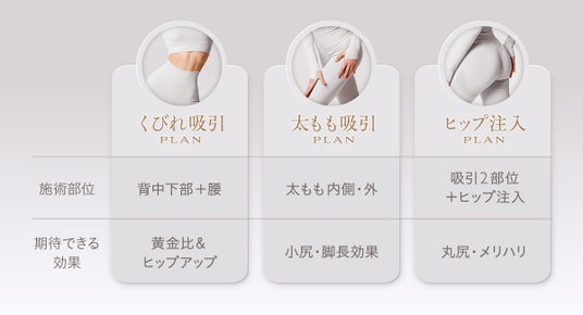 『ヒップメイク by 360脂肪吸引(R)』の選べる3つのプラン