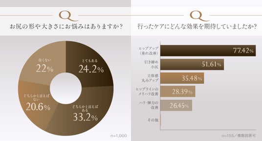 お尻のお悩み傾向と、改善に取り組んだ経験のある女性が期待した効果についての調査結果