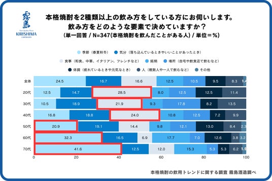 霧島酒造株式会社(本社:宮崎県都城市、代表取締役社長:江夏邦威)は、全国の20代~70代の週に1日以上飲酒する男女664名を対象に「本格焼酎の飲用トレンドに関する調査」を実施しました。