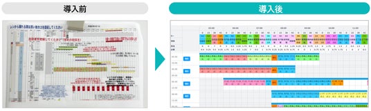 従来の作業スケジュール(左)/ sinops-WLMS WORKによる作業スケジュール(右)