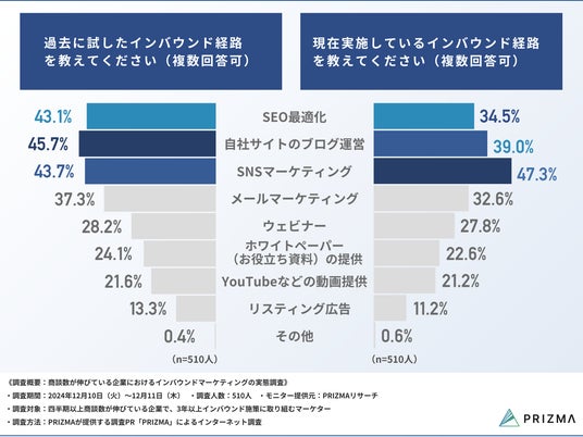 https://www.prizma-link.com/press)は、四半期以上商談数が伸びている企業で、3年以上インバウンド施策に取り組むマーケター510名を対象に、「商談数が伸びている企業におけるインバウンドマーケティングの実態調査」を実施しました。