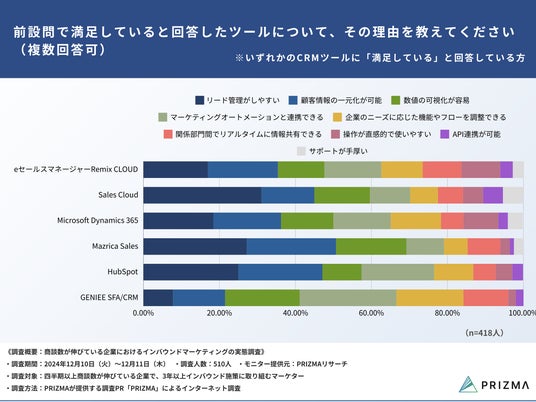 企業が導入しているCRMツールで、満足度が高いツールの特徴が明らかに