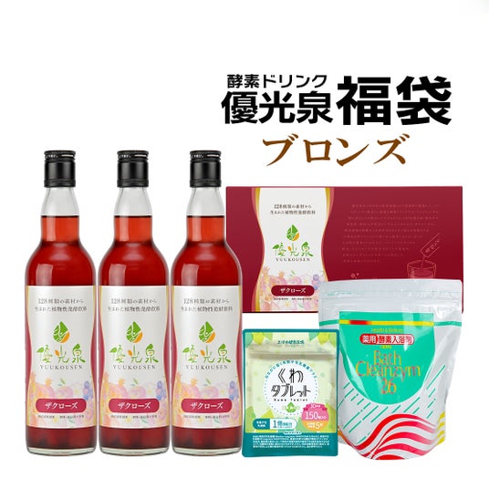 福袋の中身には、ファスティングをサポートする「優光泉ハーフボトル」や持ち運びに便利な「ポケット優光泉」、機能性表示食品の「くわタブレット」など、年末年始の食生活を整えるためにおすすめな商品が含まれています。
