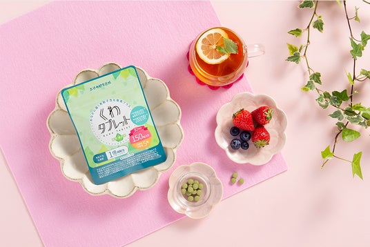 「くわタブレット」は、便通を改善する機能性表示食品です。生きて腸まで届く有胞子性乳酸菌(B.coagulans SANK70258)を配合しています。特に年末年始のごちそうを楽しむ機会が多い時期に特にぴったりの商品です。