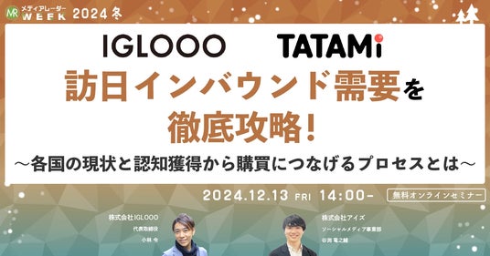 欧米豪・中東に特化したインバウンドマーケティング・プロモーション事業を行う株式会社IGLOOO(所在地:東京都港区、代表取締役:小林令、以下イグルー)は、「第16回メディアレーダーWEEK 2024 冬」の無料オンラインセミナーに、代表の小林令が登壇することをお知らせいたします。