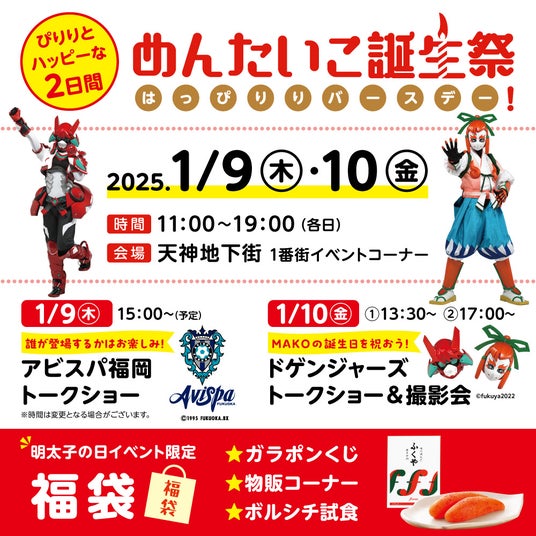 めんたいこ誕生祭 はっぴりりバースデー! 【日程】2025年1月9日(木)、10日(金)の
