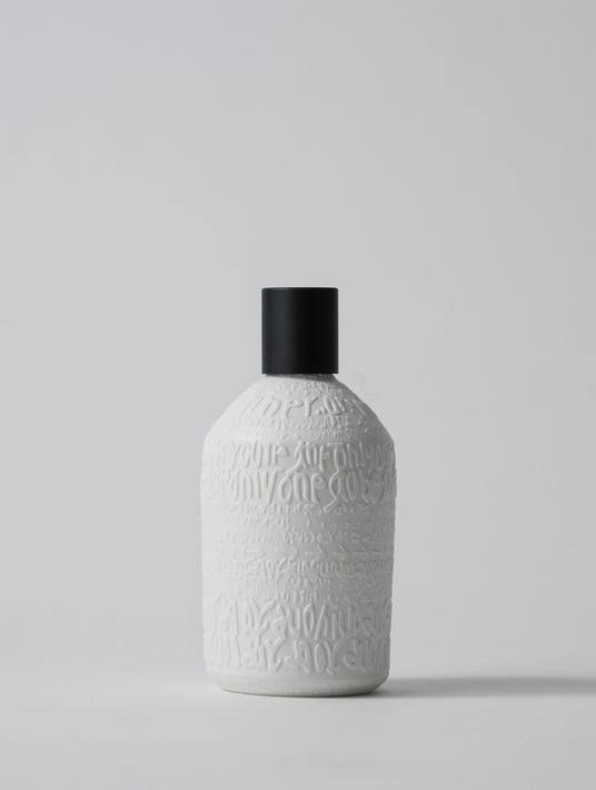 エディション・ナンバーを一本ずつ入れて、300本限定で販売いたします。磁器ボトルには真っ白なシルクマイカ釉薬を使用。使い込むプロセスで発生した汚れも味わいと捉え、手に取った一人ひとりの人生に寄り添うデザインです。