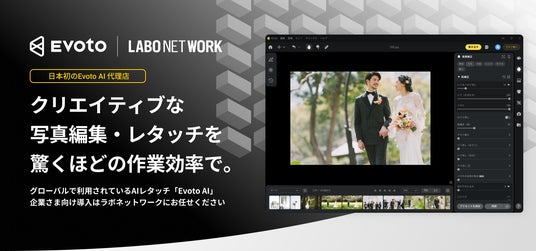 株式会社ラボネットワーク株式会社ラボネットワークは、AIレタッチソフト「Evoto AI」の日本展開を担う株式会社Truesight Japanと代理店契約を締結しました。