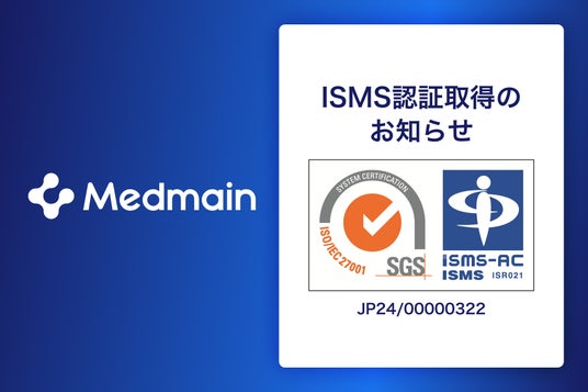 デジタル病理支援AI搭載クラウドシステム「PidPort」を提供するメドメイン株式会社 ( 本社:福岡県福岡市、代表取締役CEO: 飯塚 統、以下「メドメイン」)は、2024年11月4日付けで福岡本社と東京オフィスにて、情報セキュリティマネジメントシステム(ISMS)の国際規格「ISO/IEC 27001:2022」および国内規格「JIS Q 27001:2023」を取得したことをお知らせします。