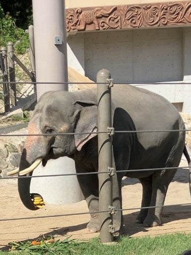 美味しそうに食べるアジアゾウのあおくん