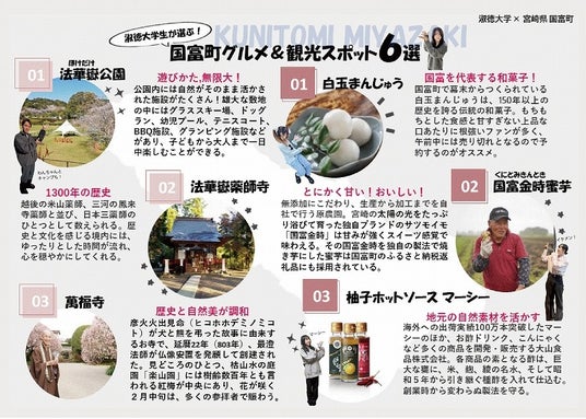 イベント当日は、まちの魅力を体感した淑徳大学経営学部観光経営学科の学生たちだからこそ発信できる国富町の魅力を、都会の学生ならではの視点で来場者に届けます。店頭に並ぶのは学生らが収穫体験も行った国富金時蜜芋のほか、宮崎名物の鶏の炭火焼きや、海外1,200店以上で販売中の液体柚子胡椒マーシーなど、いずれも国富町のふるさと納税返礼品として採用されているものです。