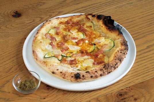 ズッキーニ、かぶ、スモークベーコンのYABASCOピザ