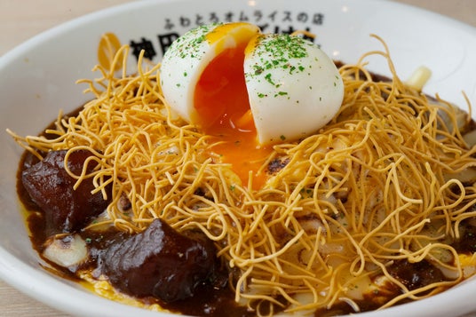 ▲神田たまごけん 福岡大名店の「牛スジ炙りチーズカレー&温玉皿うどんオムライス」1,490円