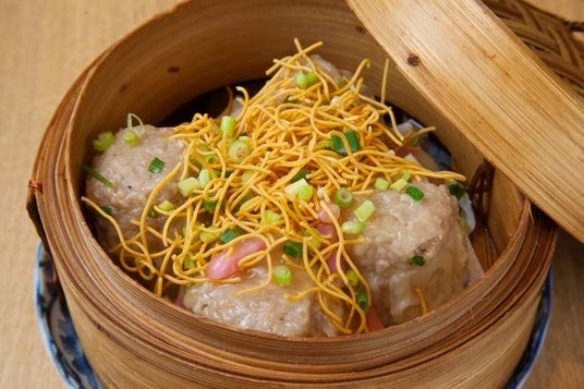 ▲餃子のたっちゃん 天神西通り店の「パリトロ餡かけ焼売」4ケ680円