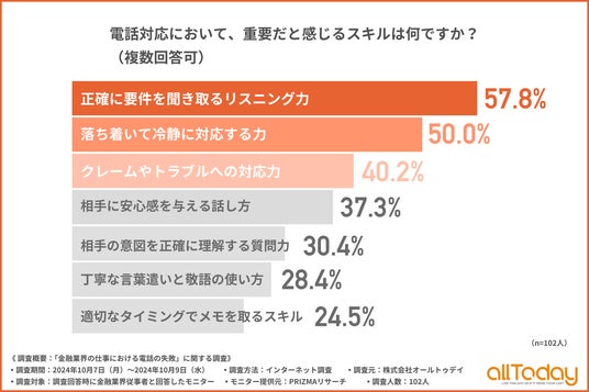 電話対応において、リスニング力と冷静な対応が重視されており、正確さと落ち着きが金融業界では特に重要視されていることがわかります。