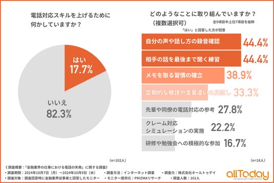 一方で、8割以上の方が電話対応スキルの向上に取り組んでいない現状が明らかになりました。