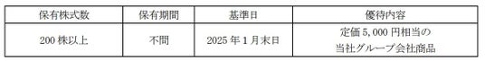 基準日(2025年1月31日)現在の株主名簿に記載または記録された株主様のうち、当社株式を200株(2単元)以上保有されている株主様を対象といたします。