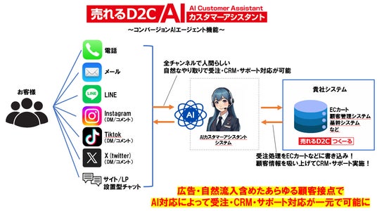 株式会社売れるネット広告社(本社:福岡県福岡市、代表取締役社長 CEO:加藤公一レオ、東証グロース市場:証券コード 9235、以下 売れるネット広告社)は、D2C企業の収益最大化を支援するAIコールセンターサービス「売れるD2C AIカスタマーアシスタント」に、