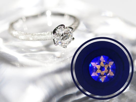 ダイヤモンドスコープで覗くと雪の結晶のシルエットが浮かび上がるカッティングは、研磨職人の手作業で行われており、美しい模様は精緻なカット技術の賜物です。