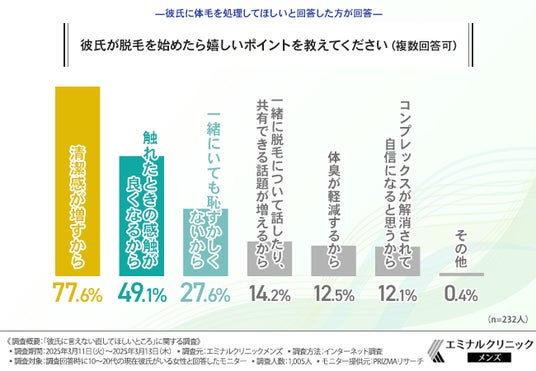 「彼氏が脱毛を始めたら嬉しいポイントを教えてください(複数回答可)」と質問したところ、