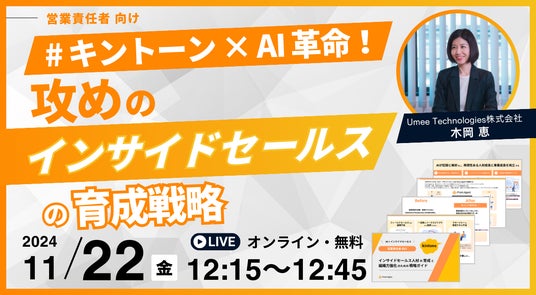 新人からトップセールスを輩出するコネクテッドセールス・プラットフォーム*「Front Agent」を開発・提供するUmee Technologies株式会社(本社:東京都調布市、代表取締役:新納 弘崇、以下「ユミー」)は、11月22日(金)15:00 - 15:30にオンラインセミナー「キントーン×CTIで実現!アウトバンド営業の質×量の最大化戦略」を開催いたします。