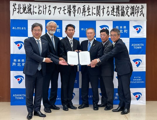 鹿島 鹿島(社長:天野裕正)は、芦北町(町長:竹崎一成)、芦北町漁業協同組合(代表理事組合長:山元光晴)、熊本県立芦北高等学校(校長:草野貴光)、株式会社肥後銀行(頭取:笠原慶久)および公益財団法人肥後の水とみどりの愛護基金(理事長:甲斐隆博)と、「芦北地域におけるアマモ場をはじめとする藻場(以下、「アマモ場等」)の再生に関する連携協定」を締結しました。