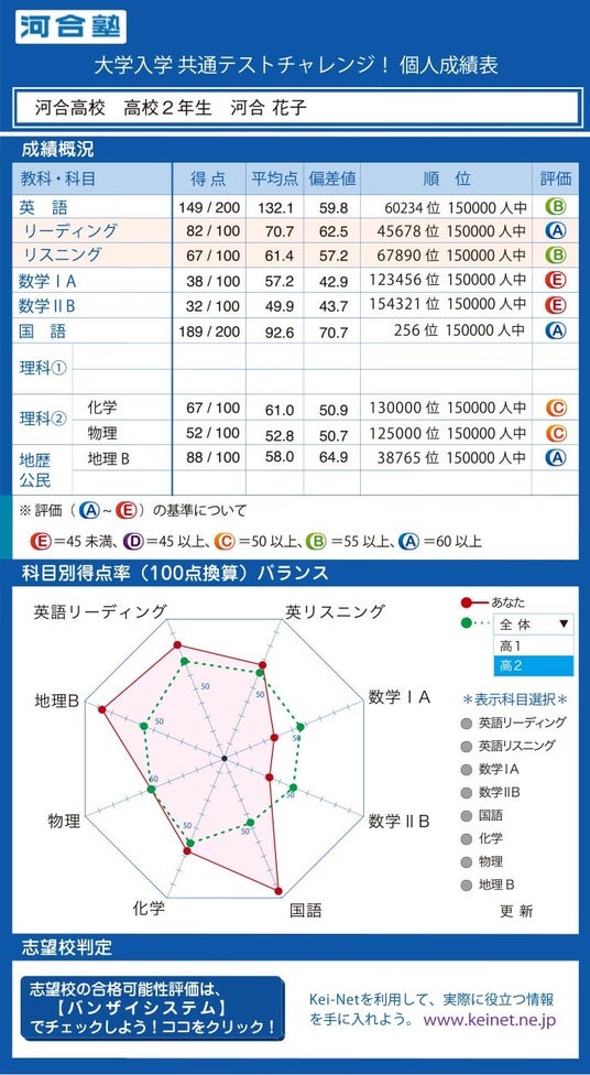 2025年1月21日(火)までに解答された場合、個人成績(得点・偏差値・順位等)は、1月22日(水)16:00からWebで確認できます。