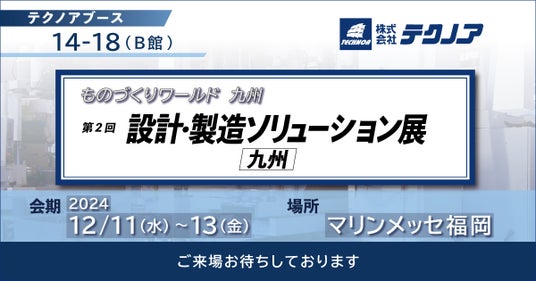 株式会社テクノア(本社:岐阜県岐阜市、代表取締役:山崎 耕治)は、12/11~13 に マリンメッセ福岡 で開催される
