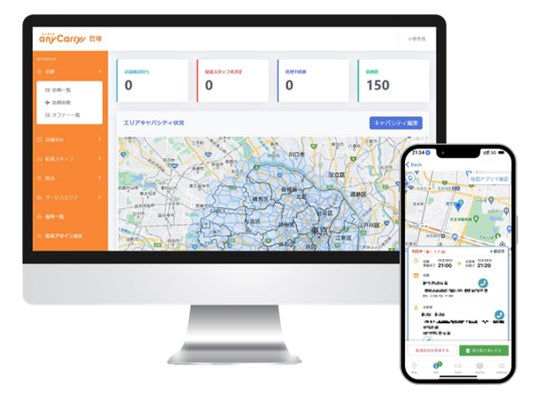 エニキャリは設立以来、シェアリングエコノミーを通じて「地域に愛される持続可能なラストマイル物流インフラ」の実現を目指し、フィジカルインターネット(*1)インフラの構築を推進しています。配送管理システムを軸に、デリバリーおよびテイクアウトサイトの構築、個社の規模や要件に応じた配送システムの開発、共同配送網や個社専用配送網の構築・提供など、ラストマイル物流を総合的に支援しています。小売業、EC事業者、不動産デベロッパー、配送事業者など、業種業態問わずニーズに応じた最適なラストマイル物流の構築・運用支援を行う物流DXです。