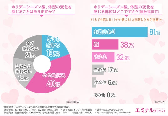 「ホリデーシーズン後、体型の変化を感じる部位はどこですか?(複数選択可)」と質問したところ、
