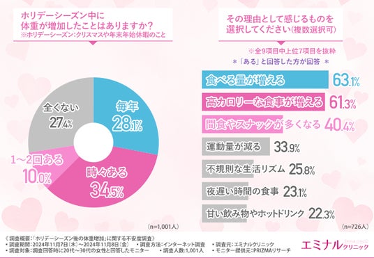 今回の調査で、20代から30代の女性のホリデーシーズンに伴う体重増加への不安や管理意識が明らかになりました。