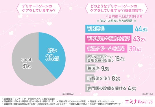 「デリケートゾーンのケアをしていますか?」と質問したところ、