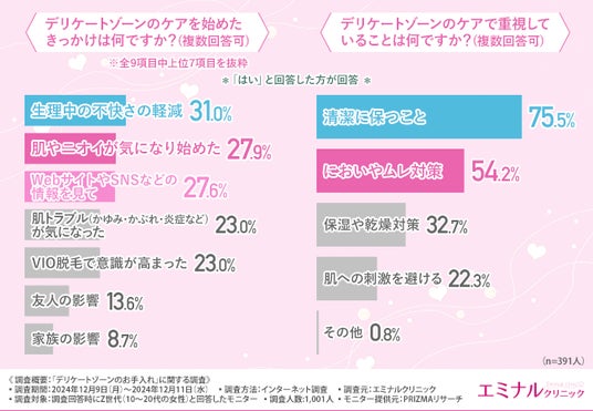 さらに「デリケートゾーンのケアを始めたきっかけは何ですか?(複数回答可)」と質問したところ、