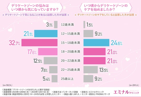 さらに「いつ頃からデリケートゾーンのケアを始めましたか?」と質問したところ、