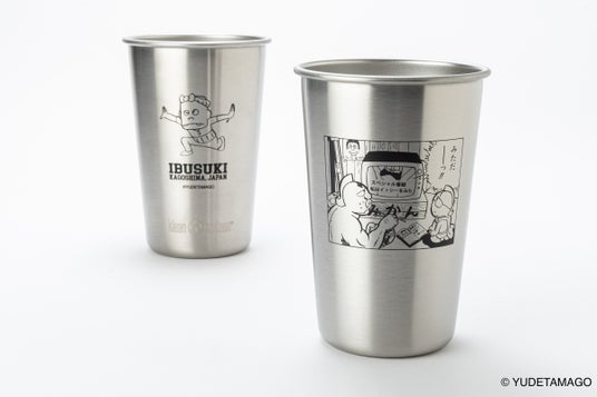 パイントカップは、アメリカ・カリフォルニアのステンレスボトルメーカー Klean Kanteen(クリーンカンティーン)の「パイントカップ 16oz(473ml)」をベースに、「サンシャイン」「与作」それぞれのイラストを「IBUSUKI」の文字とともに配することで、指宿の ‘スーベニア焼酎カップ’ をイメージして作りました。