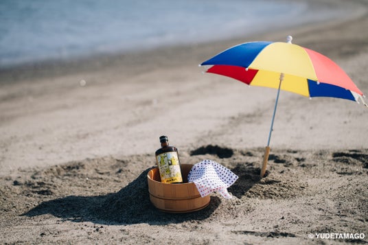 ジャンプコミックス15巻のジェロニモvsサンシャイン戦に描かれる、サンシャインの「地獄めぐりNo.6・砂地獄」のシーンを「指宿が誇る名物No.1 砂むし温泉」にアレンジしたラベルデザイン。砂むし温泉に入浴するかのような姿のサンシャインの脇には、砂にひきずりこまれる利右衛門ボトルも描かれています。