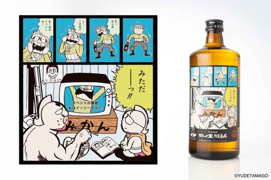 また、焼酎のリリースにあわせて、同コミックデザインを配したカップ2種とTシャツ1種(2カラー)もラインナップ。