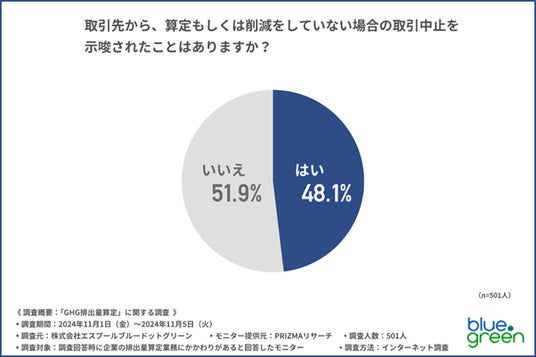 続いて、「取引先から、算定もしくは削減をしていない場合の取引中止を示唆されたことはありますか?」と質問したところ、