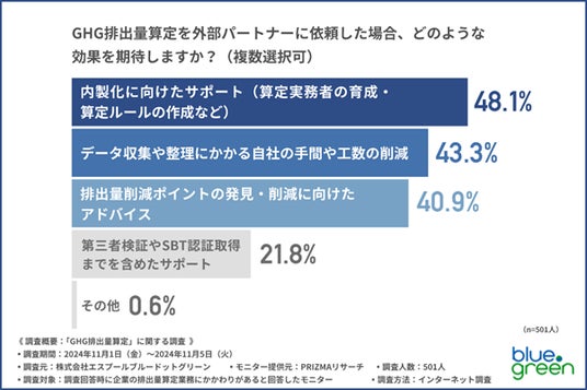 最後に、「GHG排出量算定を外部パートナーに依頼した場合、どのような効果を期待しますか?(複数選択可)」と質問したところ、