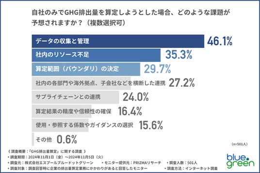 「自社のみでGHG排出量を算定しようとした場合、どのような課題が予想されますか?(複数選択可)」と質問したところ、