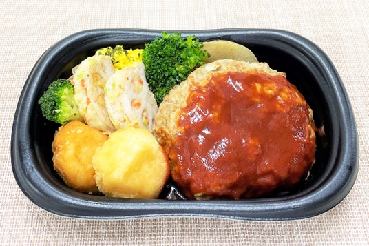 『白石産れんこん使用のわくわくハンバーグセット』は、佐賀県白石町産のれんこんを混ぜ込んだ食感が楽しいハンバーグをメインに、すり身焼きやポテトのチーズボールなどを添えた、多品目を一度に楽しめる地産地消の商品です。