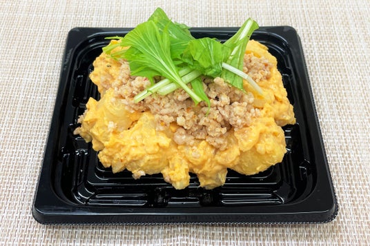 担々麺のような味わいに仕上げた新発想のポテトサラダです。豆板醤やごま油などで味付けしたピリ辛のポテトサラダに、ひき肉・水菜をトッピングしました。おつまみにもぴったりな味わいです。