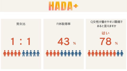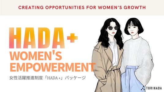 「HADA+」という名前には、TORIHADAが女性のキャリアと日常生活の両面をサポートし、ポジティブな影響を与えたいという思いが込められています。この「+」記号は社員があらゆるライフステージで活躍し続けられるようにプラスにするという姿勢を表しています。