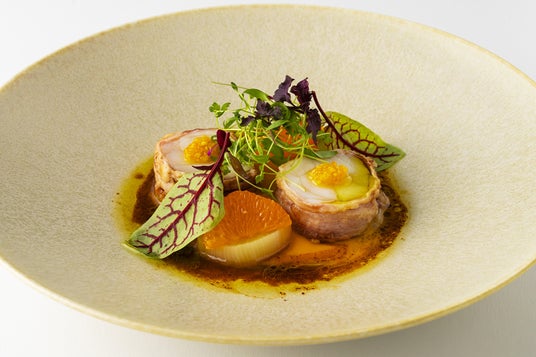 1999年に福岡・博多にオープン。ひらまつレストランの中でも、歴史あるレストランの一つです。伝統的なフランス料理の技法をベースに、日本人の持つ感性で作り上げる繊細かつ洗練されたフランス料理をご提供しています。国内外の食材をはじめ、九州で育まれた厳選食材などを使い、ひらまつの磨き抜かれた技により昇華させた一皿をご堪能いただけます。名画やアンティークなどの調度品に囲まれた気品あふれる空間で、九州出身の料理長と地元を愛するスタッフによる、温かなおもてなしとともに至福の時間を楽しみください。
