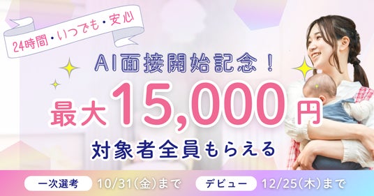 またキッズラインでは、24時間いつでも一次選考が受けられるAI面接を導入しました。多くの方にベビーシッター選考にチャレンジいただけるよう、期間限定で【AI面接開始記念キャンペーン】を実施します。