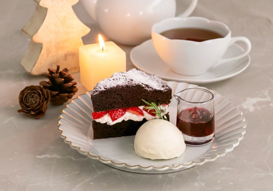 毎年人気のクリスマス限定デザート。今年は濃厚なチョコレートケーキに、スパイスの効いた温かいベリーソースを添えた、心温まる特別なクリスマスデザートをご用意しました。期間中は、クリスマス仕様の特別なランチョンマットを使用。クリスマスツリーが飾られた店内で、限定デザートをお楽しみいただけます。