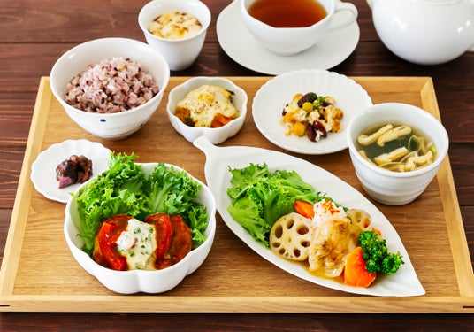 えらべるメインのおかずと、副菜やごはん、みそ汁などがセットになった人気のランチメニューが、冬メニューにリニューアルしました。メインのおかずには、人気の「揚げ鶏のねぎソース」に加え、濃厚デミグラスソースと大葉の香りがさわやかなホワイトソースを合わせた「青じそクリームとデミグラスソースのハンバーグ」と、ふわっと揚げた白身魚と冬野菜を和風のおろしあんで仕上げた「白身魚と冬野菜のおろしあんかけ」が登場します。
