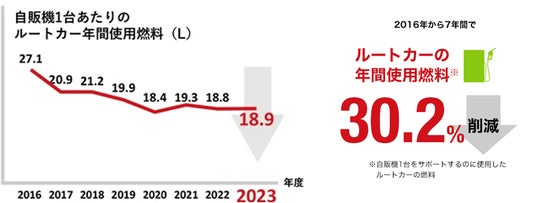 また、自販機の補充や環境整備などのオペレーションを担うルート担当者のトラック(ボトルカー)のハイブリッドカーの導入を進めるなど、環境負荷低減をめざした事業運営をしています。